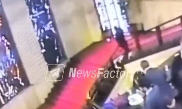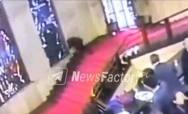 Egyik nagy mázlija, hogy az üveg felső része nem zuhant rá, a másik, hogy ő sem esett ki lendületből az ablakon, bár nem sok hiányzott hozzá. Szerencsére végül csak a felsőteste lógott ki az utca fölé, deréktől lefelé a minisztérium épületében maradt. Külön érdemes figyelni a videón a fogadás résztvevőit, akik lefagyva nézik a tanácsosi fejetlenséget.