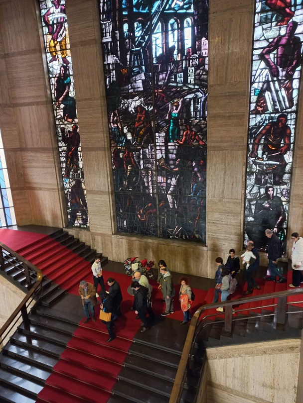 A Mario Sironi (Sassari, 1885 – Milánó, 1961) 1932-ben alkotott monumentális La Carta del Lavoro / Munkáscharta ólomüveg ablaka a főlépcső teljes falát elfoglalja, mely a huszadik századi olasz monumentális művészet egyik legszebb példája.